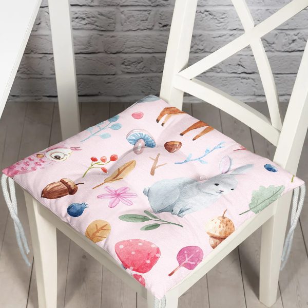 Tavşan Ve Orman Temalı Dijital Baskılı Özel Tasarım Modern Pofuduk Sandalye Minderi