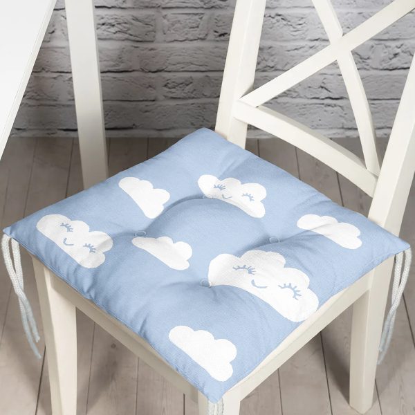 Mavi Zeminli Bulut Temalı Dijital Baskılı Modern Pofuduk Sandalye Minderi