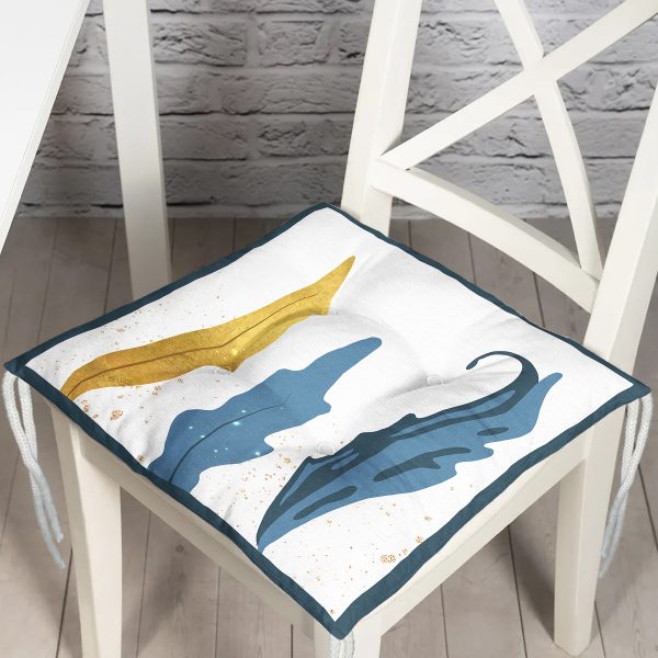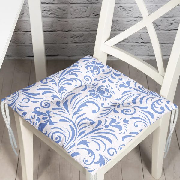 Açık Mavi Geometrik Desenli Dijital Baskılı Pofuduk Sandalye Minderi