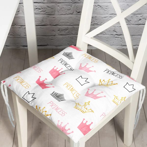 Realhomes Pudra Renk Prenses Taç Motifli Dijital Baskılı Modern Pofuduk Sandalye Minderi
