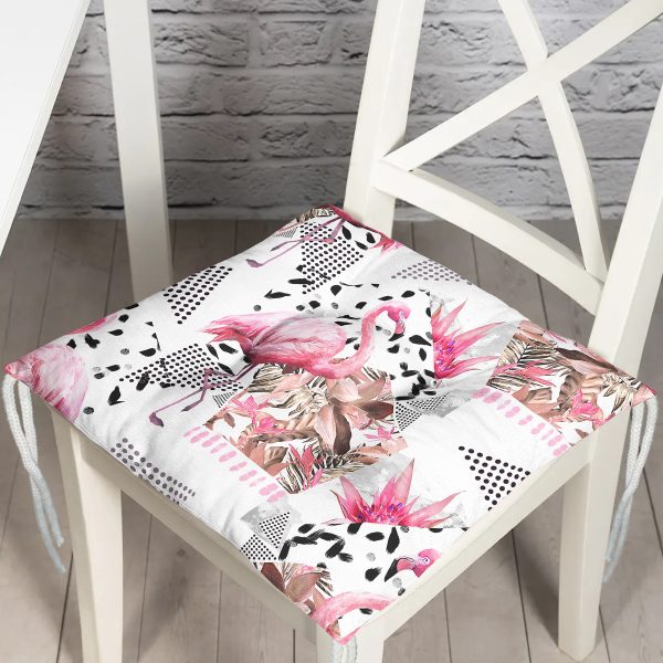 Bal Peteği Temalı Flamingo Motifli Pofuduk Sandalye Minderi