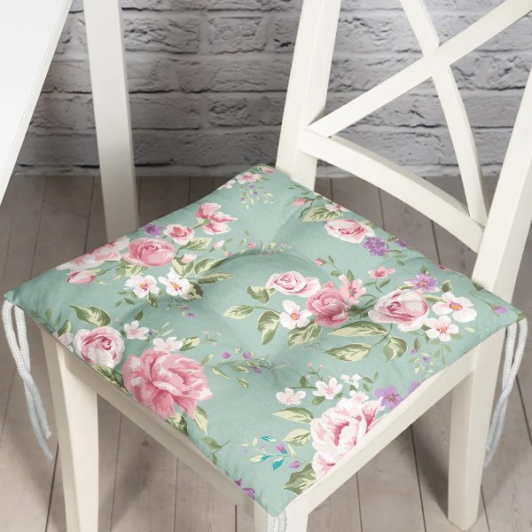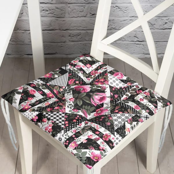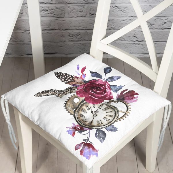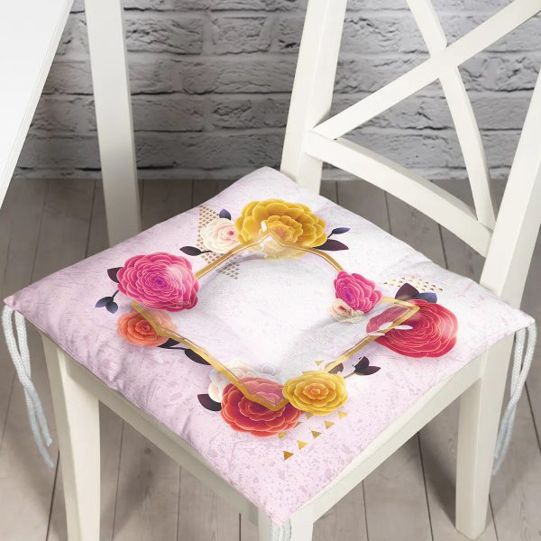 Özel Tasarım Gül Tasarımlı Dijital Baskılı Modern Pofuduk Sandalye Minderi
