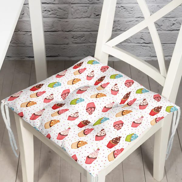 Cupcake Desenli Özel Tasarım Dijital Baskılı Modern Pofuduk Sandalye Minderi