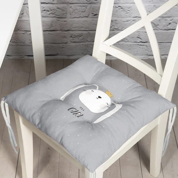 Realhomes Gri Zeminde Its Girl Tavşan Motifli Modern Pofuduk Sandalye Minderi