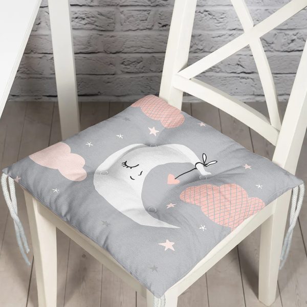 Gri Zeminde Ay ve Bulut Desenli Bebek Odası Pofuduk Sandalye Minderi
