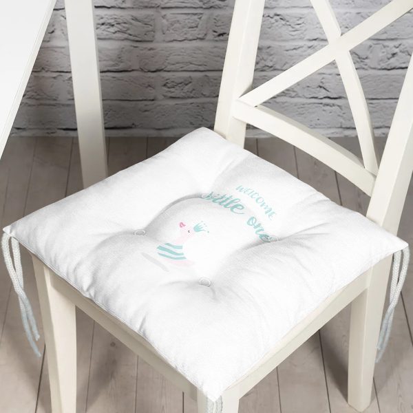 Beyaz Zemin Welcome Little One Yazılı Özel Tasarımlı Dijital Baskılı Çocuk Odası Pofuduk Sandalye Minderi