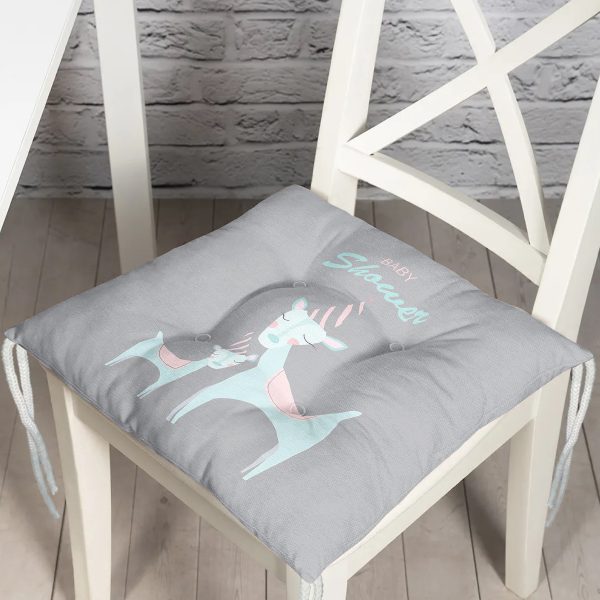 Realhomes Gri Zeminde Unicorn Geyikler Tasarımlı Modern Pofuduk Sandalye Minderi