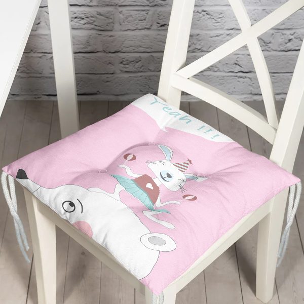 Realhomes Zıpzıp Tavşan Özel Tasarım Dijital Baskılı Modern Pofuduk Sandalye Minderi