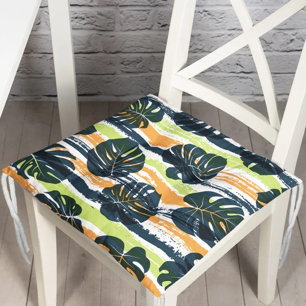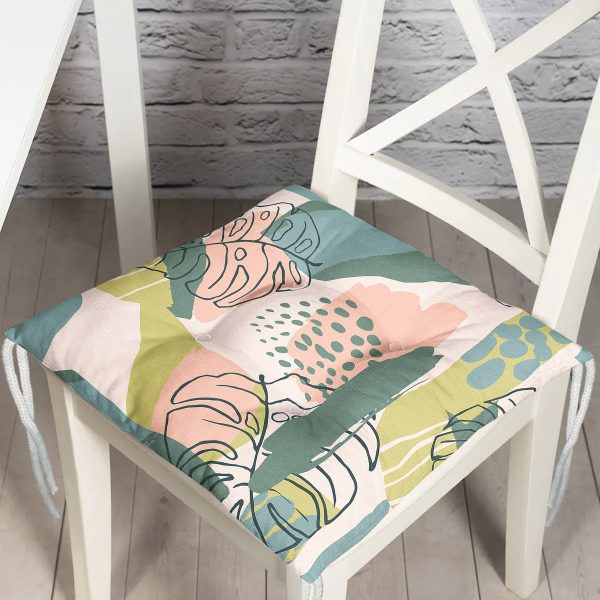 Renkli Zeminde Yaprak Motifli Dijital Baskılı Modern Pofuduk Sandalye Minderi