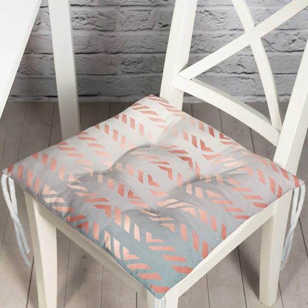 Gri Zeminde Geometrik Desenli Dijital Baskılı Modern Pofuduk Sandalye Minderi