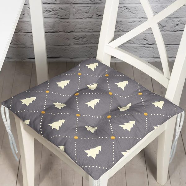 Gri Zeminde Gold Puantiyeli Çam Ağacı Desenli Dijital Baskılı Modern Pofuduk Sandalye Minderi
