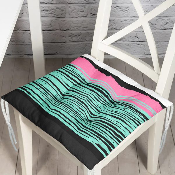 Ebru Desenli Dijital Baskılı Modern Pofuduk Sandalye Minderi