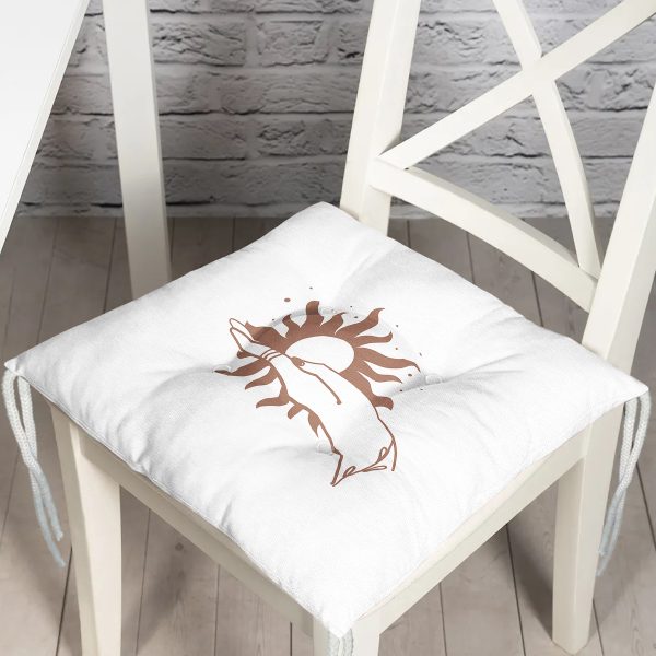 Beyaz Zeminde Onedraw Çizimli Güneş Tutan El Desenli Dijital Baskılı Modern Pofuduk Sandalye Minderi