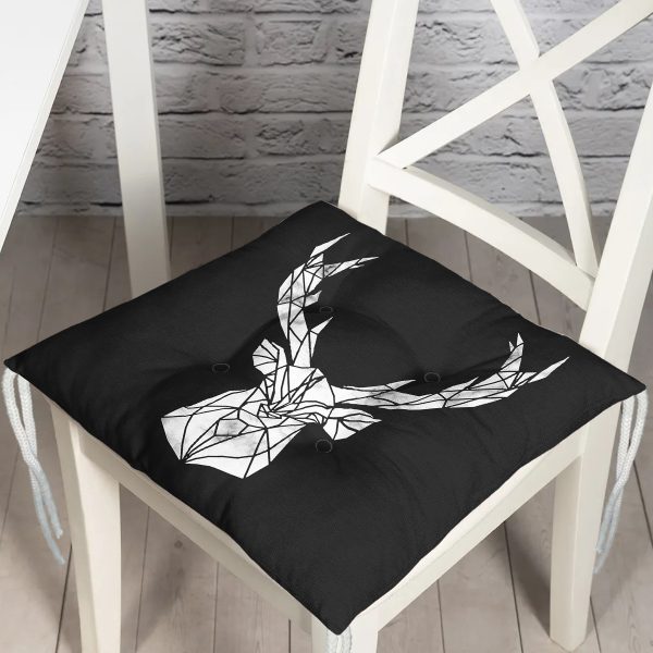 Siyah Zeminde Mermer Motifli Geyik Tasarımlı Modern Pofuduk Sandalye Minderi
