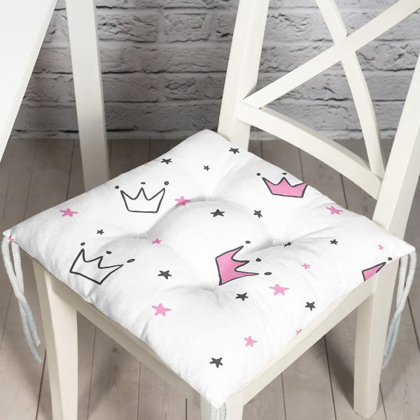 Realhomes Prenses Tacı Çizimli Özel Tasarım Dijital Baskılı Modern Pofuduk Sandalye Minderi