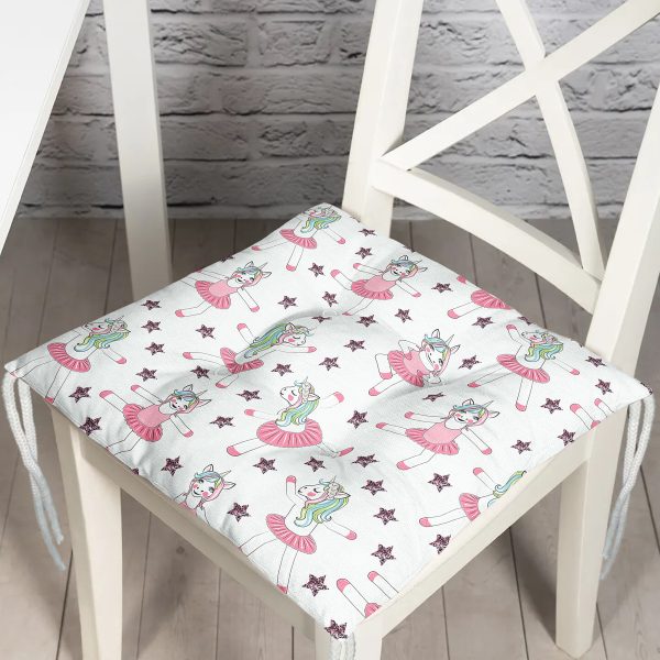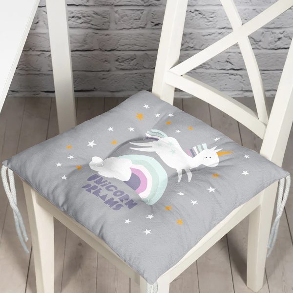 Realhomes Dans Eden Unicorn Çizimli Özel Tasarım Dijital Baskılı Modern Pofuduk Sandalye Minderi