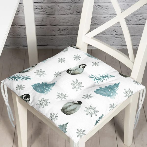Realhomes Sevimli Penguen ve Kar Taneleri Özel Tasarım Dijital Baskılı Modern Pofuduk Sandalye Minderi