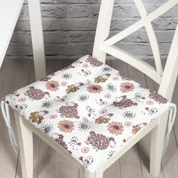 Çiçek Ve Koyun Motifli Dijital Baskılı Özel Tasarım Modern Pofuduk Sandalye Minderi