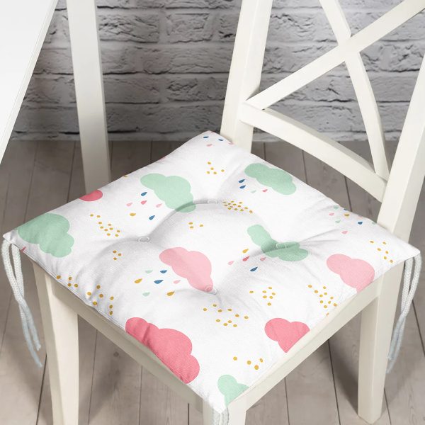 Renkli Bulut Motifli Dijital Baskılı Özel Tasarım Modern Pofuduk Sandalye Minderi