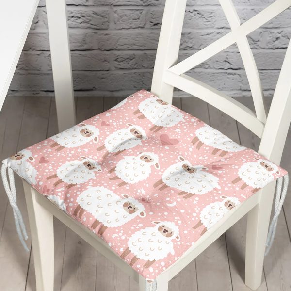 Pembe Zeminde Koyun Desenli Dijital Baskılı Özel Tasarım Modern Pofuduk Sandalye Minderi
