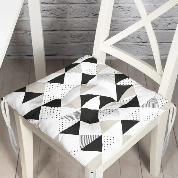 Zikzak Elmas Desenli Zambak Motifli Modern Pofuduk Sandalye Minderi