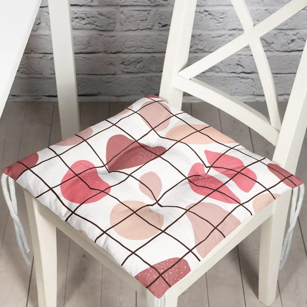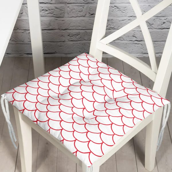 Kırmızı Geometrik Desenli Dijital Baskılı Modern Pofuduk Sandalye Minderi