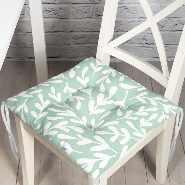 Mint Yeşili Zeminli Yaprak Motifli Dijital Baskılı Pofuduk Sandalye Minderi