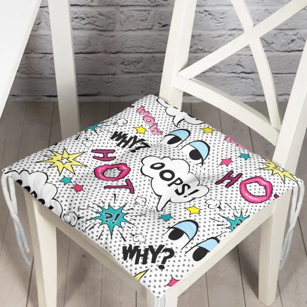 Realhomes Puanlı Pop Art Tasarımlı Dijital Baskılı Modern Pofuduk Sandalye Minderi