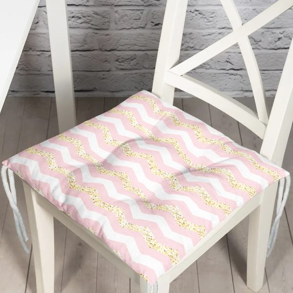Pembe Gri Beyaz Zikzaklı Özel Tasarımlı Dijital Baskılı Çocuk Odası Pofuduk Sandalye Minderi