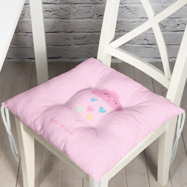 Realhomes Pembe Zeminde Pembe Bulutlu Baby Shower Modern Pofuduk Sandalye Minderi