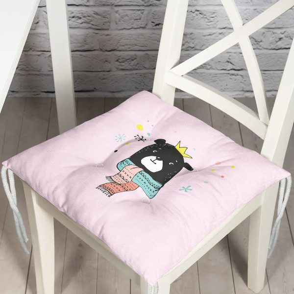 Realhomes Pembe Zeminde Atkılı Ayıcık Desenli Modern Pofuduk Sandalye Minderi