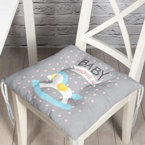 Gri Zeminde Baby Shower Temalı Desenli Bebek Odası Pofuduk Sandalye Minderi
