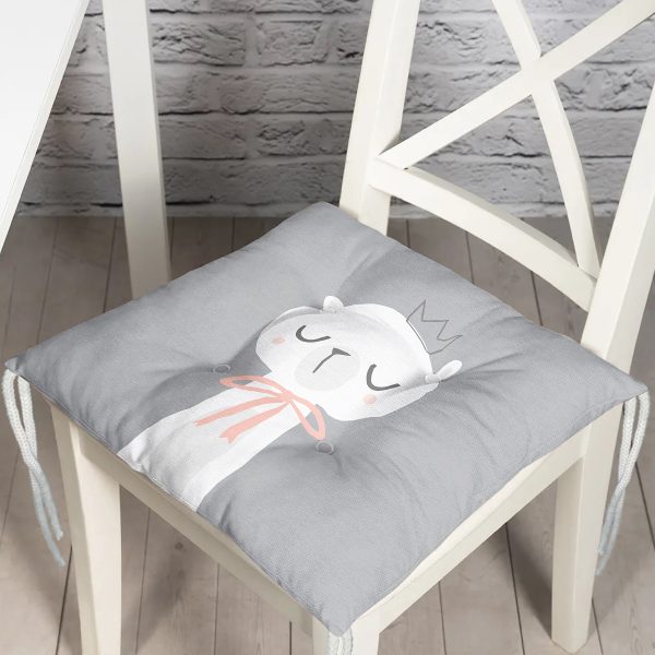 Gri Zemin Uyuyan Ayıcık Desenli Özel Tasarımlı Dijital Baskılı Modern Pofuduk Sandalye Minderi