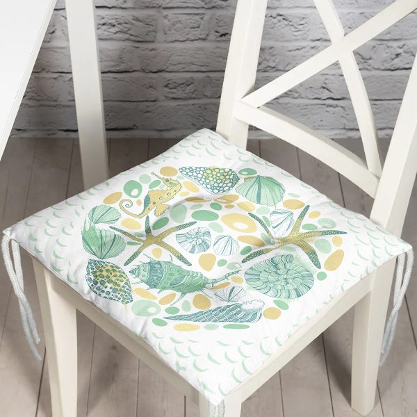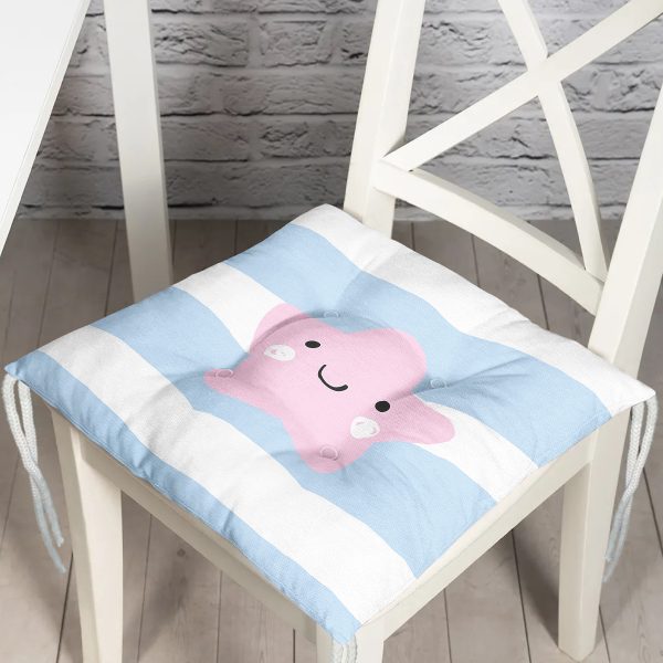 Beyaz Zemin Üzerinde Deniz Yıldızı Desenli Dijital Baskılı Modern Pofuduk Sandalye Minderi