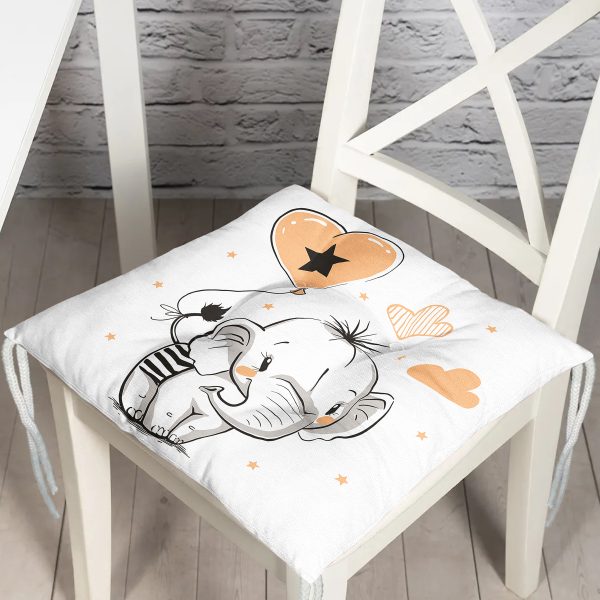 Sevimli Bebek Fil Çocuk Odası Dijital Baskılı Modern Pofuduk Sandalye Minderi
