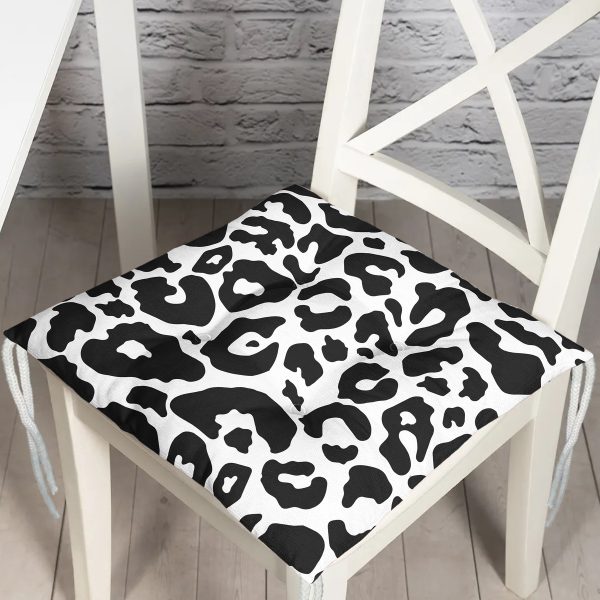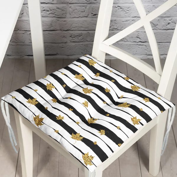 Siyah Beyaz Zeminli Gold Yaprak Desenli Dijital Baskılı Modern Pofuduk Sandalye Minderi
