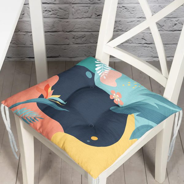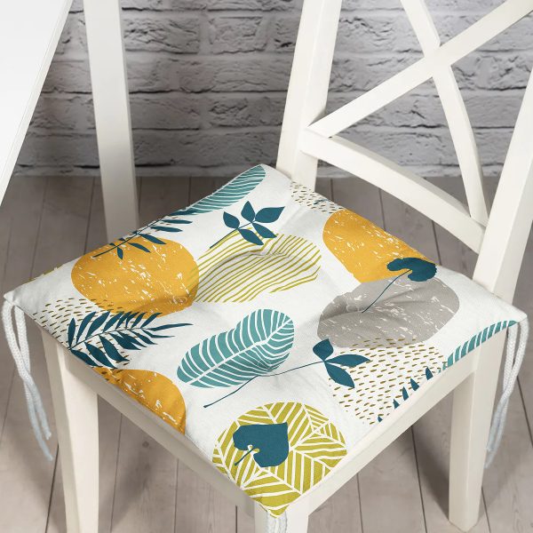 Renkli Zemin Üzerinde Pastel Yaprak Desenli Dijital Baskılı Modern Pofuduk Sandalye Minderi