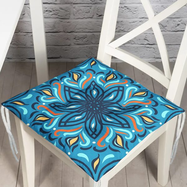 Renkli Zemin Üzerinde Çini Desenli Dijital Baskılı Modern Pofuduk Sandalye Minderi