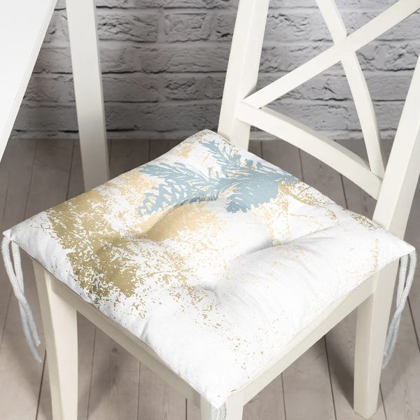 Beyaz Zemin Üzerinde Yaprak Desenli Dijital Baskılı Modern Pofuduk Sandalye Minderi