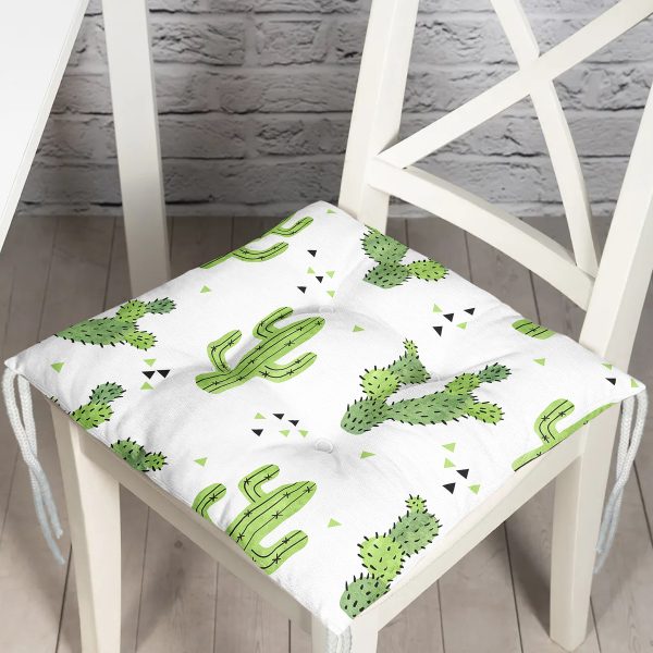 Beyaz Zemin Üzerinde Renkli Kaktüs Desenli Dijital Baskılı Modern Pofuduk Sandalye Minderi