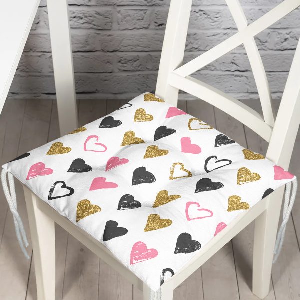 Sevgililer Günü Temalı Özel Tasarım Dijital Baskılı Modern Pofuduk Sandalye Minderi