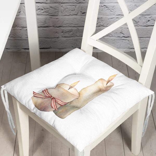 Özel Tasarım Mum Motifli Dijital Baskılı Modern Pofuduk Sandalye Minderi