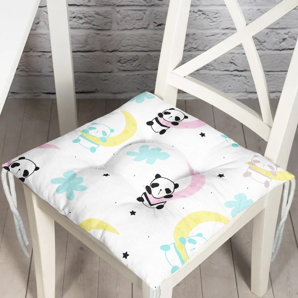 Realhomes Ay Üstünde Panda Tasarımlı Dijital Baskılı Modern Pofuduk Sandalye Minderi