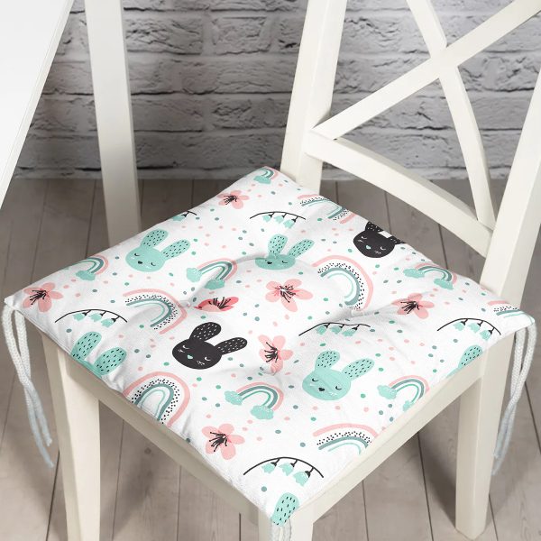 Uyku Odası Temalı Tavşan Desenli Dijital Baskılı Özel Tasarım Modern Pofuduk Sandalye Minderi