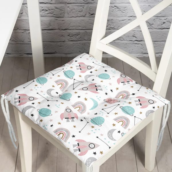 Çocuk Odası Uzay Temalı Dijital Baskılı Özel Tasarım Modern Pofuduk Sandalye Minderi
