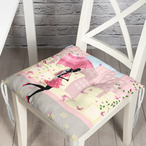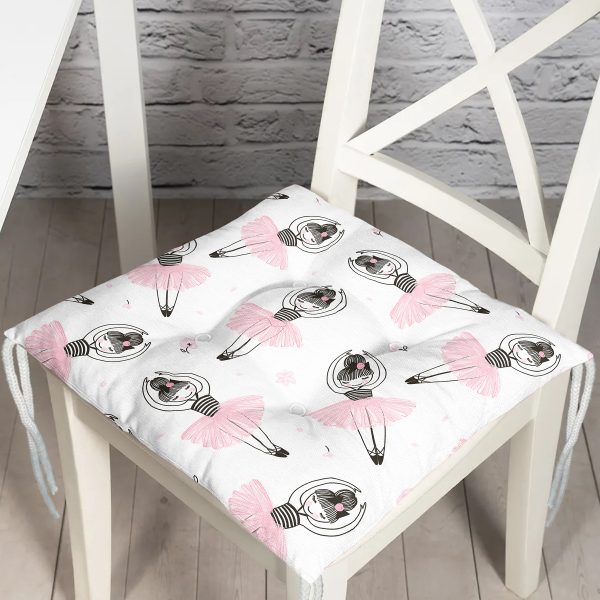 Sevimli Balerin Desenli Dijital Baskılı Özel Tasarım Modern Pofuduk Sandalye Minderi