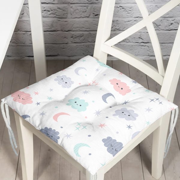 Ay Bulut Ve Yıldız Motifli Dijital Baskılı Özel Tasarım Modern Pofuduk Sandalye Minderi
