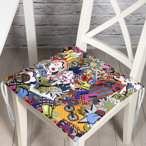 Retro Pop Art Modern Tasarımlı Dijital Baskılı Modern Pofuduk Sandalye Minderi