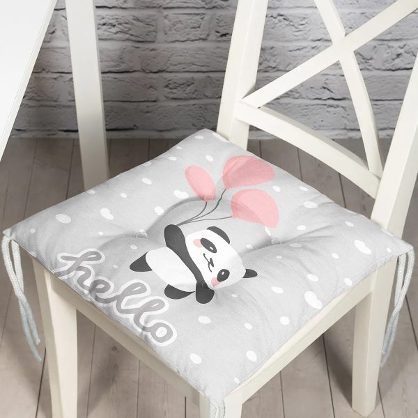 Realhomes Uçan Balonlar ve Sevimli Panda Desenli Modern Pofuduk Sandalye Minderi