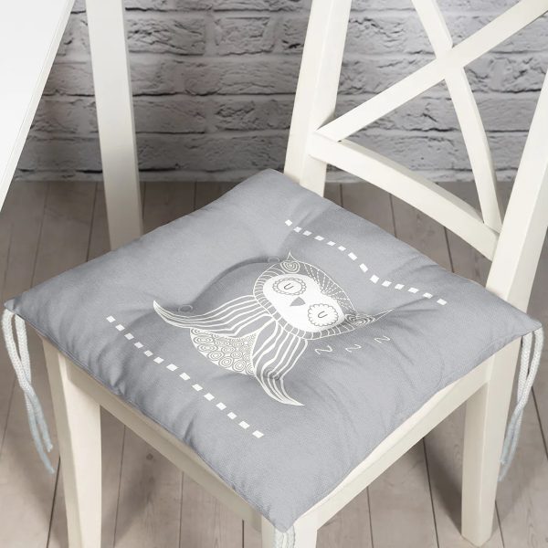 Realhomes Gri Zeminde Baykuş Özel Tasarımlı Modern Pofuduk Sandalye Minderi